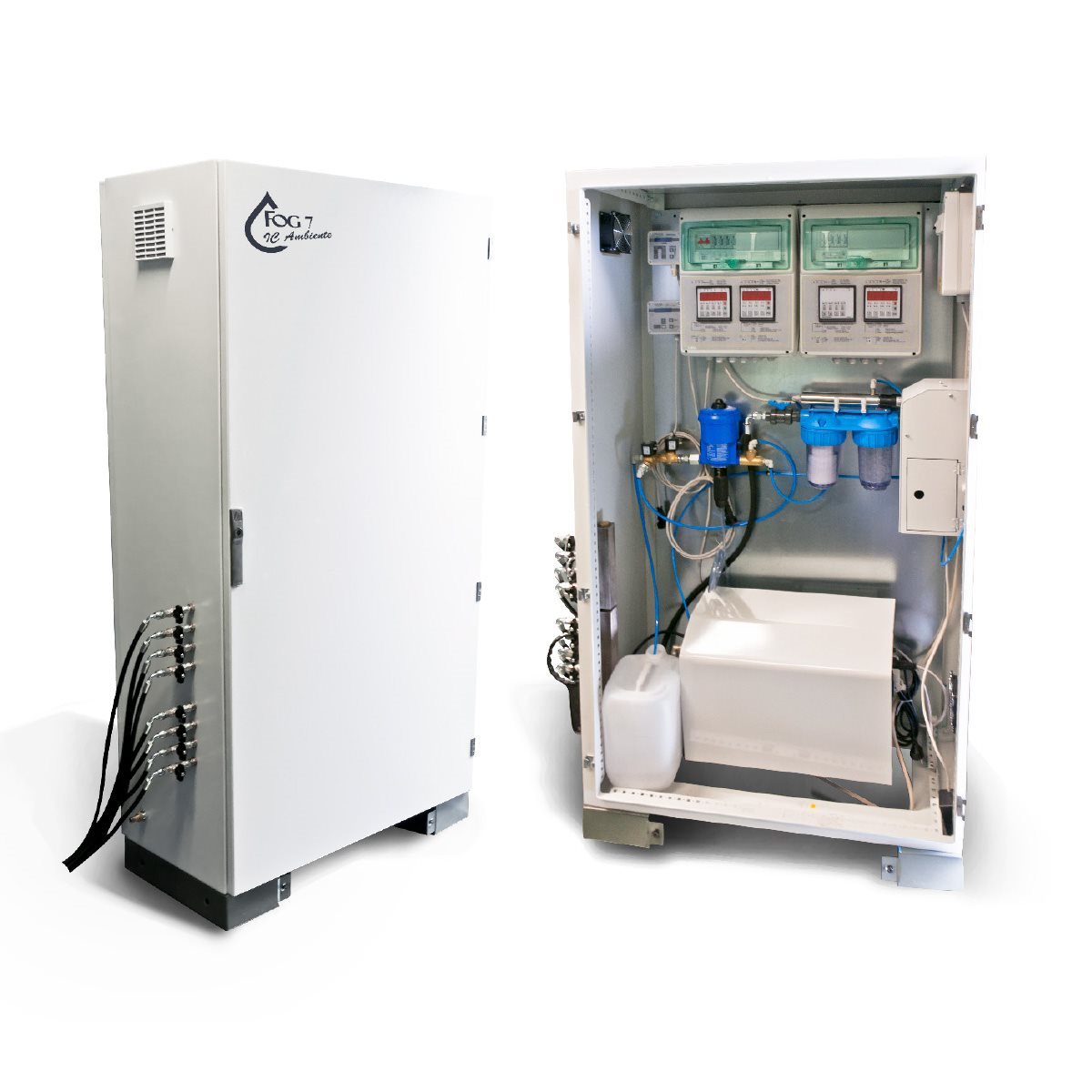 The environment you desire. Air conditioning, humidifying, dust suppression, aromatization, fog effects. Fog 70 IC Ambiente is a multi-zone fogging system designed as an all inclusive solution, all fully assembled and set up ready to work immediately. A leap forward in quality in the sector of civil and industrial cooling.