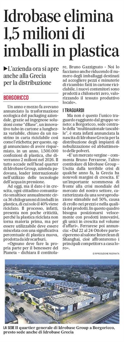 Ma non è questo l’unico traguardo raggiunto dal gruppo veneto: a Borgoricco, sede centrale della “multinazionale tascabile”, è stata infatti annunciata la nascita di Idrobase Grecia per la distribuzione degli impianti di nebulizzazione ed abbattimento delle polveri.